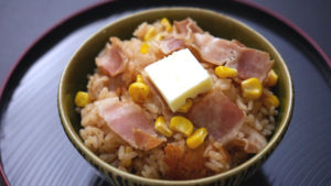 バター醤油が旨い!とうもろこしとベーコンの炊き込みご飯